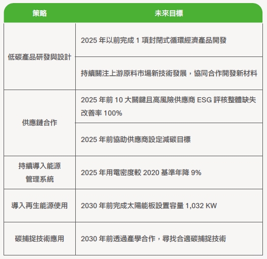 因應低碳轉型趨勢,研發單位投入輕量化產品、循環經濟產品⋯等低碳產品開發,積極降低產品排碳量。