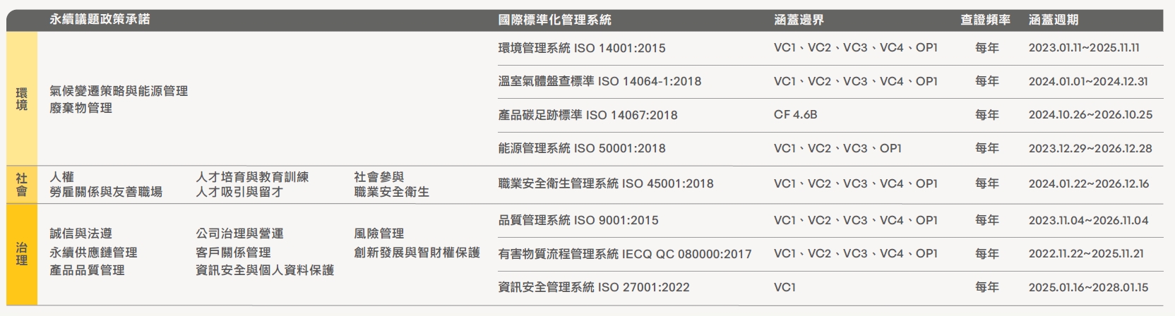 - 持續提升環境保護措施,落實節能減碳、清潔生產